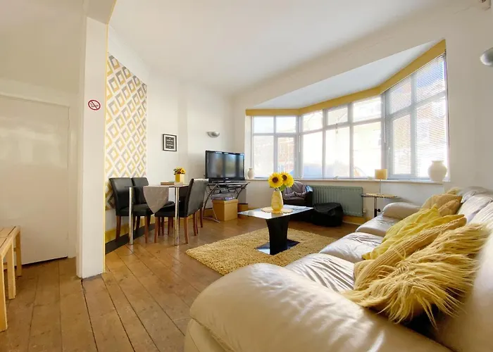 Situado no distrito de Boscombe em Bournemouth, o apartamento Cosy House Walking Distance To Beach Free Parking Apartamento fica a 0.5 km do aeroporto de em Bournemouth. Este apartamento é capaz de acomodar 7 hóspedes e possui 4 quartos, bem como 1 casas de banho.